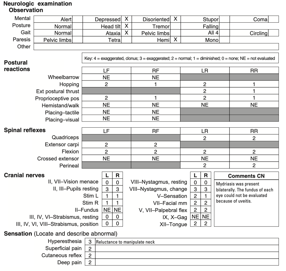 Platt SR, Olby NJ. The neurological examination. In: BSAVA Manual of Canine and Feline Neurology. 3rd ed. Quedgeley, Gloucester, England: BSAVA, 2004;1–24.